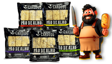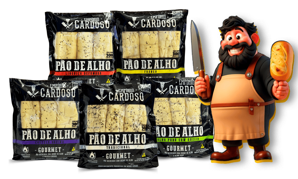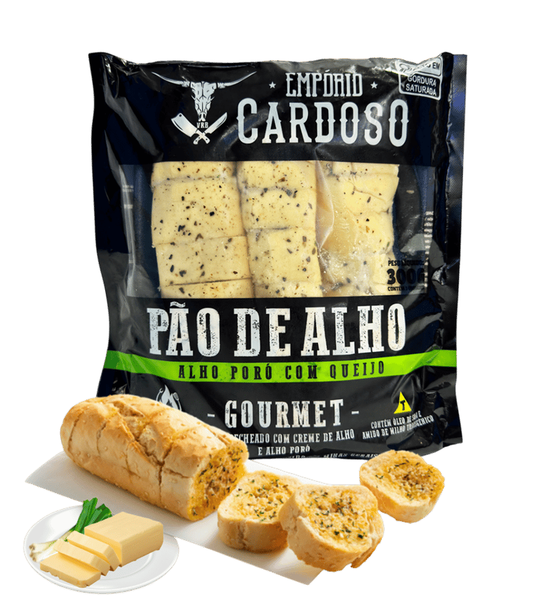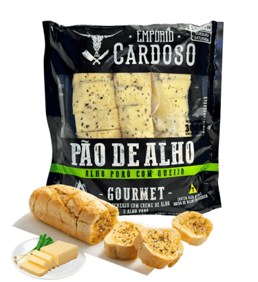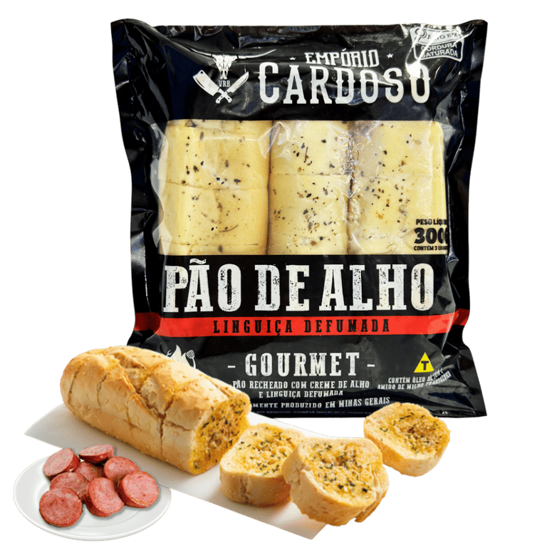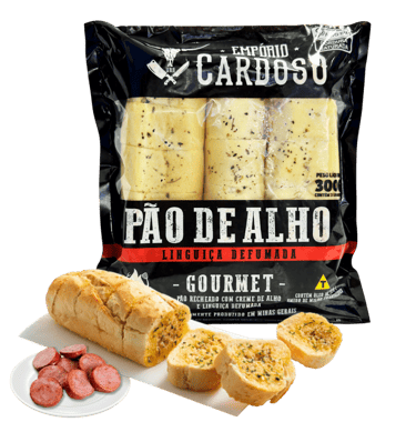 Pão de Alho Empório Cardoso Sabor Linguiça Defumada: uma combinação irresistível de pão macio, creme temperado e o sabor marcante da linguiça defumada. Ideal para churrascos e petiscos, pronto para assar e servir.